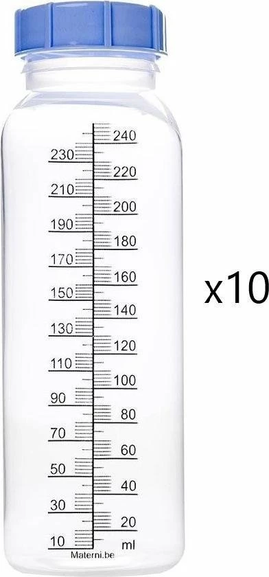 Deze set bevat: 10 flessen van 240 ml allen met dop.