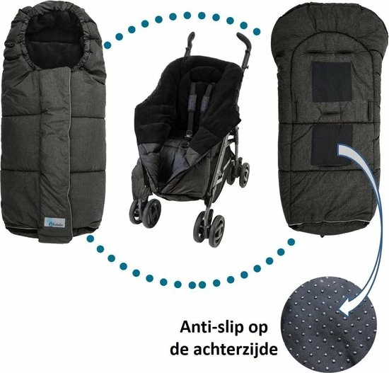 - De voetenzak is met 3 stevige ritsen volledig te openen en ook als speeldekentje te gebruiken.