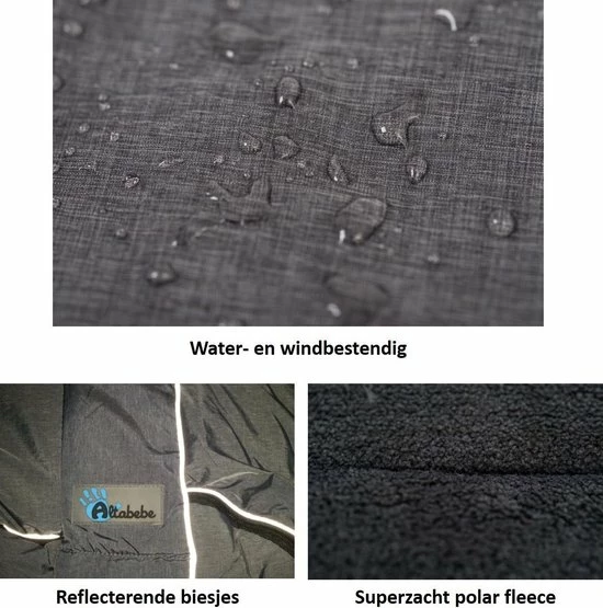 Buitenkant: 100% Pear polyester, water- en windbestendig, kleur: donkergrijs gem?leerd