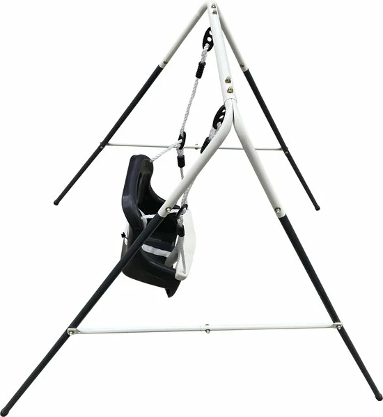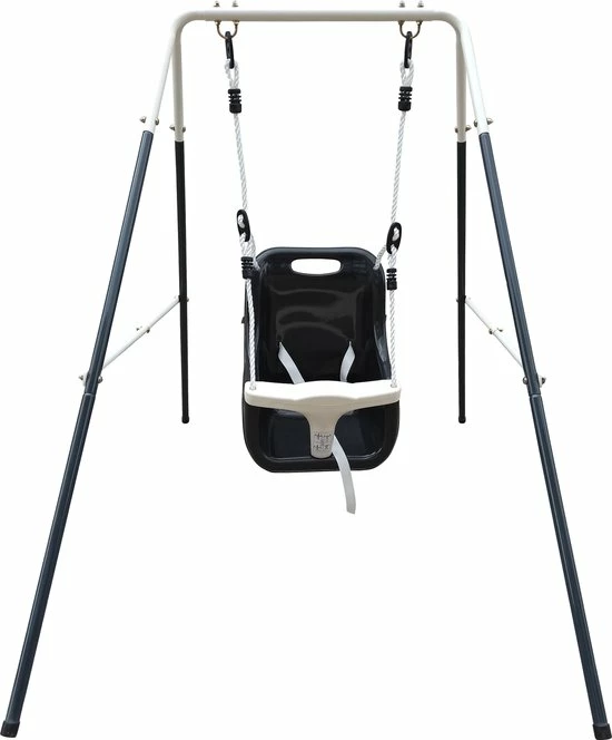 Het schommel frame is gemaakt van gepoedercoat staal en is van binnen en buiten gegalvaniseerd , wat een langdurige bescherming tegen roest geeft.