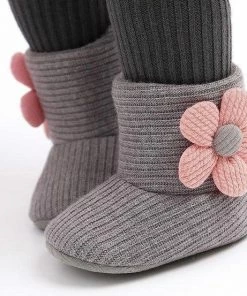 Happy Alpaca Babyslofjes – Winter Sloffen – Grijs – Met Bloempje – Maat 21 Voor 12-15 Mnd (13 Cm)