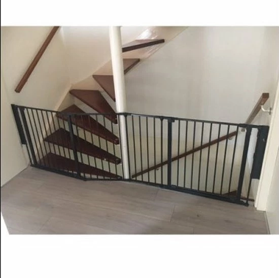 Dit kinderhek is een samenstelling uit 2 deuren en verlengstukken. Het traphekje kan je niet inschuiven. Veiligheidshek komt in een hoek, boog of zigzag te staan. Traphek staat dan ook stabieler dan in een rechte lijn. Hoe langer de rechte lijn hoe instabieler het hek kan worden.