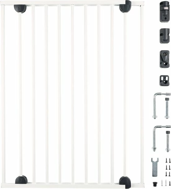 Doordat dit traphek is voorzien van een Wallfix bevestiging ben je zeker van een veilige afsluiting van de trap- of deuropening. Je maakt het traphek vast door middel van schroeven in de deurpost. Het hekje is enkel geschikt voor gebruik binnenshuis en past in deuropeningen van 62 tot 102 centimeter breed.