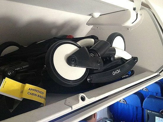 * Sinds 2012 worden de YOYO-kinderwagens (opgevouwen afmetingen 52 x 44 x 18 cm door de meeste luchtvaartmaatschappijen geaccepteerd of erkend als handbagage. De normen voor handbagage kunnen echter verschillen afhankelijk van de luchtvaartmaatschappij en we raden daarom aan contact op te nemen met de door u gekozen luchtvaartmaatschappij voordat u reist naar de meest recente toegestane handbagage.