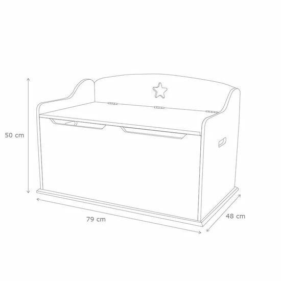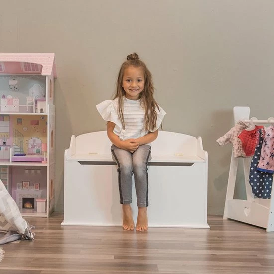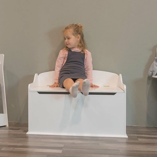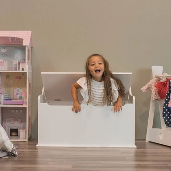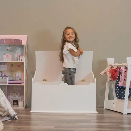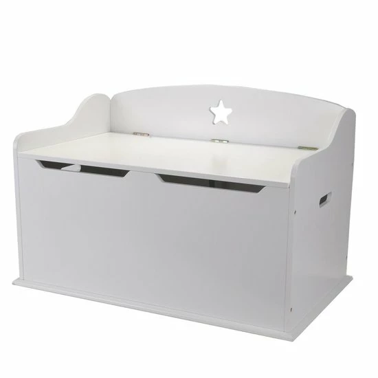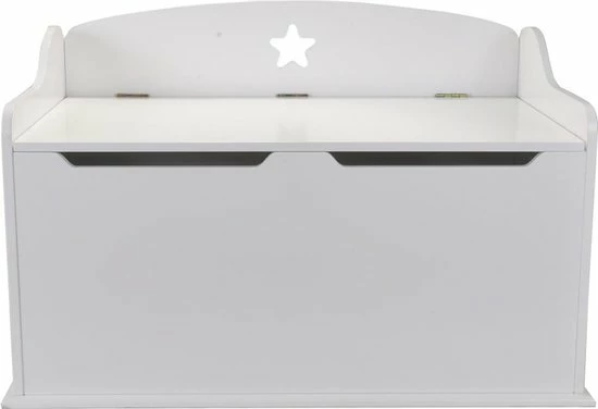 Deze opbergkist Classic wit van Bandits & Angels staat mooi in elke kinderkamer! Berg al je speelgoed op of gebruikt hem als zitplekje. Aan de zijkanten zijn handgrepen uitgesneden en een decoratieve ster. De klep kan open blijven staan door de veilige werking van een gasveer. De afmetingen van de buitenkant zijn 79 x 48 x 51,5 centimeter. De opbergruimte aan de binnenkant meet 73,5 x 42,5 x 33 centimeter.