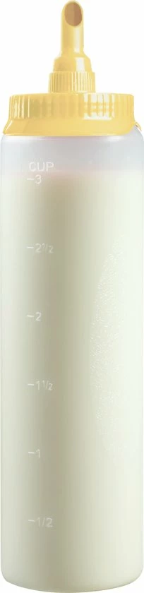 Bestron doseerfles voor 700 ml, met schaalverdeling voor cr?pes, poffertjes, pannenkoeken, wafels, muffins of donutbeslag, kleur: wit/geel