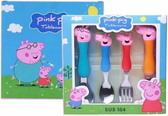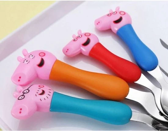 Leuke Pink Pig bestekset voor de allerkleinsten (peuters/kleuters). Het bestek is gemaakt van RVS en heeft leuke varkentjes figuren (Vader, moeder, broer George en peuter Peppa.)