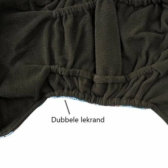 De extra opstaande rand draagt bij aan het voorkomen van doorlekken. Let op dat de randen om de benen en buik goed afsluiten om doorlekken te voorkomen.