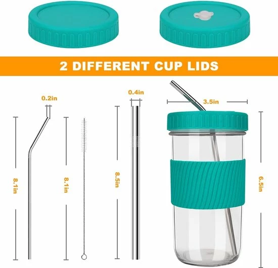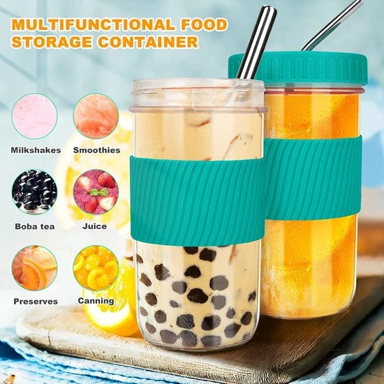 - Veilige en betrouwbare materialen Mason jar drinkbeker is gemaakt van hoogwaardig glas, met plastic glazen glazen potten van voedselkwaliteit en 304 roestvrijstalen rietjes. Vrij van BPA en PVC, veilig, herbruikbaar en milieuvriendelijk. Voel je vrij om onze boba smoothie cup te gebruiken om eten en drinken op te slaan.