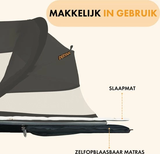 - Inhoud: Reistent, zelfopblaasbaar matras (2,5 cm), draagtas, katoenen hoesje met rits