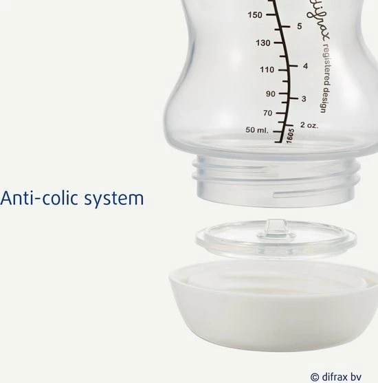Het Anti-colic ventiel voorkomt vacu?m zuigen en zorgt voor een constante doorstroom van de flesvoeding. Dit vermindert de kans op boeren, spugen en buikkrampjes bij je baby.