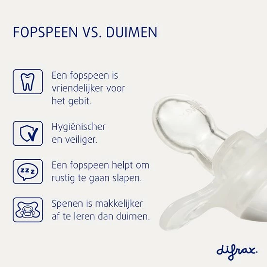 - Difrax fopspenen zijn ontwikkeld in samenwerking met medische deskundigen en voorzien in de natuurlijke zuigbehoefte van je baby.