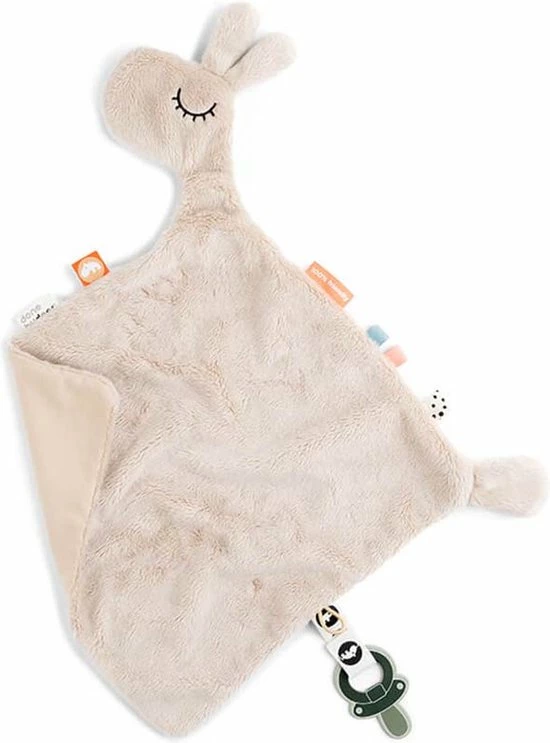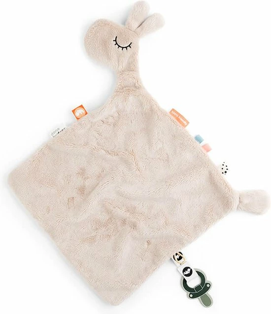 Super zacht knuffeldoekje van Done By Deer. Baby’s spelen heel graag met de labeltjes die eraan hangen.