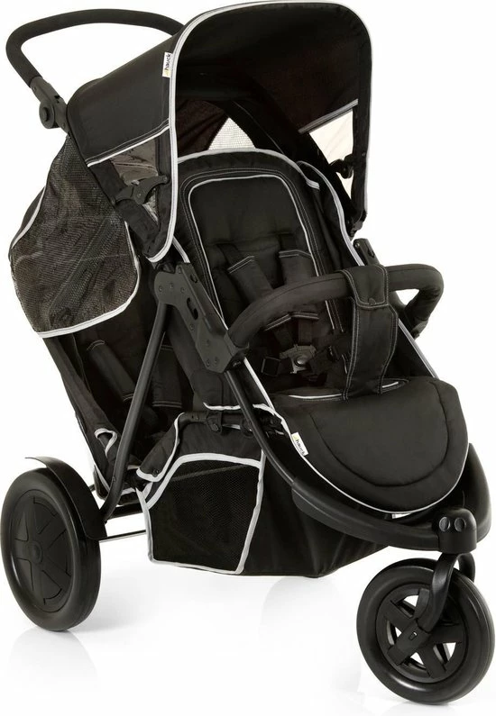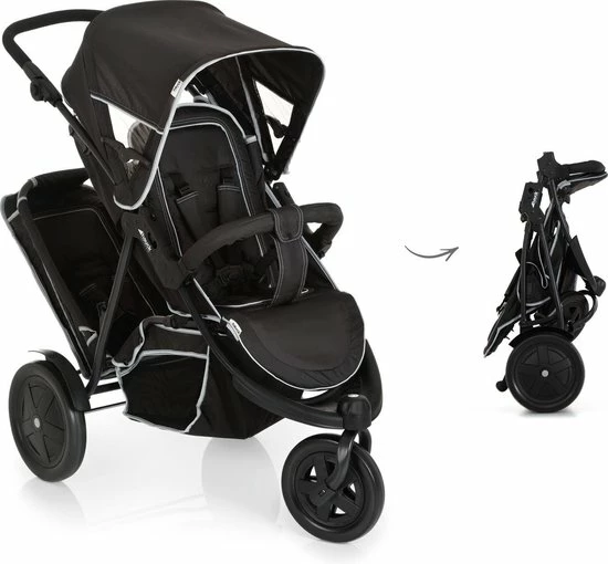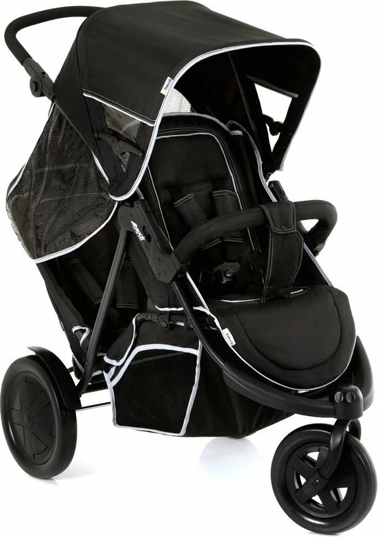 Deze kinderwagen heeft een draaibaar en vergrendelbaar voorwiel waardoor hij bijzonder wendbaar is. De gesloten achterwielen en de overliggende beschermplaten voorkomen dat je kindje de wielen aanraakt. Verder is deze dubbele kinderwagen ook geschikt voor oneffen terrein dankzij het grote formaat van de wielen en de vering. Dankzij het compacte opvouwbare formaat kunt u hem zelfs in kleinere auto’s vervoeren.