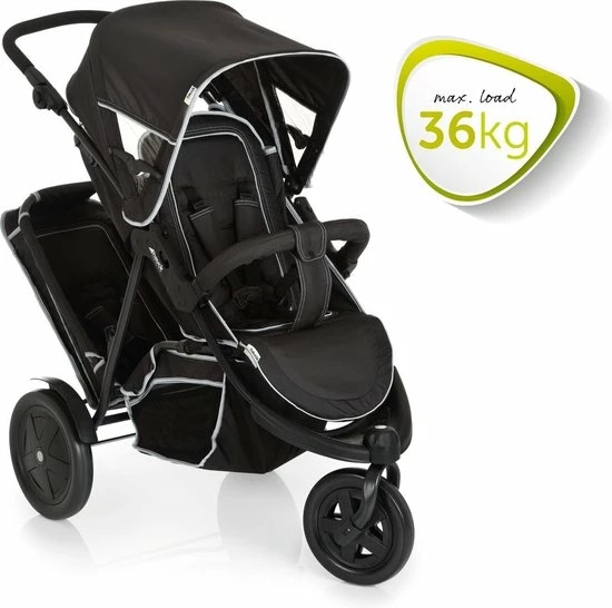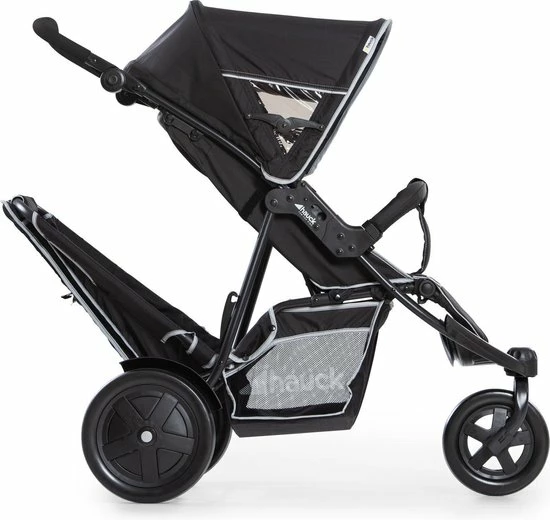 De kinderwagen is te combineren met de Hauck 2in1 reiswieg, zo kun je de kinderwagen vanaf de geboorte gebruiken. De rugleuning van de hoofdstoel kan met ??n hand in de ligpositie worden gebracht. De voetensteun is ook meervoudig verstelbaar. De rugleuning van de tweede zitplaats kan ook in liggende positie worden versteld door de ritssluitingen aan de zijkant te openen. Daarnaast biedt de uitschuifbare luifel de beste bescherming tegen zon, wind en regen. Indien nodig kan de overkapping geheel of gedeeltelijk worden verwijderd.