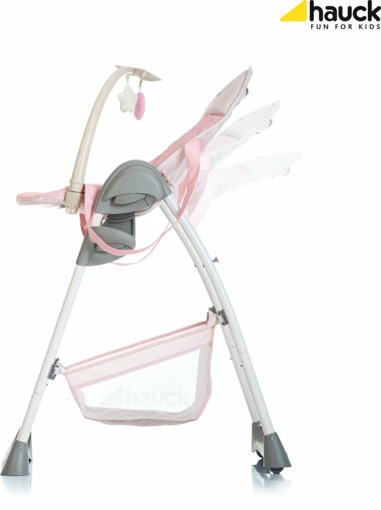 De Sit’n Relax kinderstoel van Hauck is een multifunctionele starterset vanaf de geboorte van jullie nieuwe gezinslid. De Sit’n Relax is de ideale kinderstoel voor pasgeboren baby’s. Zodra jullie baby rechtop kan zitten kan hij of zij al deelnemen aan alle zaken van het gezin. Ongeacht aan welke tafel zit jullie baby altijd op ooghoogte dankzij de zeven verschillende hoogtes van deze kinderstoel. Je kunt de rugleuning van het babyaccessoire achterover zetten tot een liggende positie. Op deze manier ligt het kindje comfortabel in het babyaccessoire. De brede en ergonomisch gevormde zitting is erg comfortabel. De vijfpuntsgordel en de extra plastic houder houden jouw kind veilig wanneer hij of zij in het stoeltje zit en mee-eet aan tafel. Je kunt het eet- en speelblad in diepte verstellen voor de ideale beenruimte. De handige uitsparing voor bekers houdt drinken veilig en met de verhoogde rand valt er niks van het blad af. Het blad kan probleemloos worden verwijderd om schoon te maken, indien nodig.
