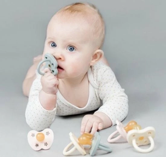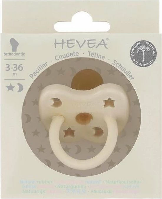 Unieke spenen van Hevea die geheel uit het duurzame, milieuvriendelijke materiaal 100% natuurrubber zijn gemaakt. Deze spenen van Hevea bevatten geen kleurstoffen of andere schadelijke stoffen. Deze speen is voorzien van een viertal kleine ventilatiegaatjes in de vorm van kroontjes. Hierdoor en door de vlindervorm is er voldoende ruimte voor de mond en neus van jouw baby. Deze speen is solide en bevat dus geen naden. Zodoende is er ook geen ruimte voor bacteriën. De speen kan gesteriliseerd worden met heet water.
