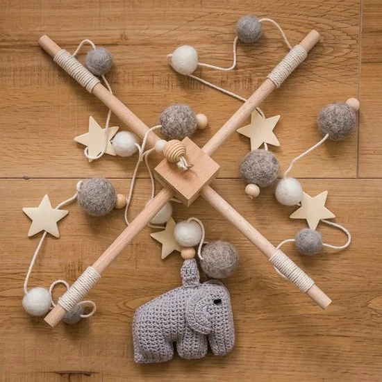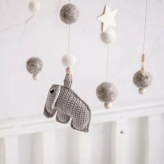Deze baby mobiel bestaat uit zacht materiaal en vilt voor een veilige ervaring voor ouders & kind. Met duurzaam geproduceerde stoffen geniet je van een stijlvol mobiel met een kleine ecologische voetafdruk.