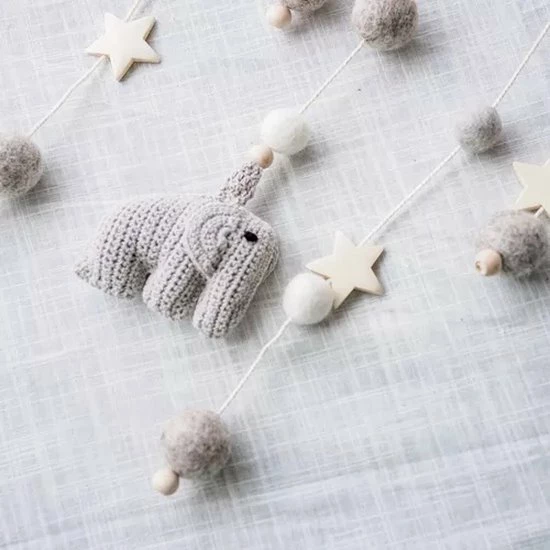 Met deze mooie babymobiel boven het babybedje zal je kleintje snel ontspannen. Het olifantje en de sterren nemen je kindje mee naar dromenland voor een vrolijke en rustgevende nacht.