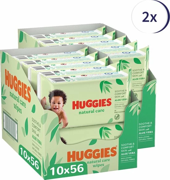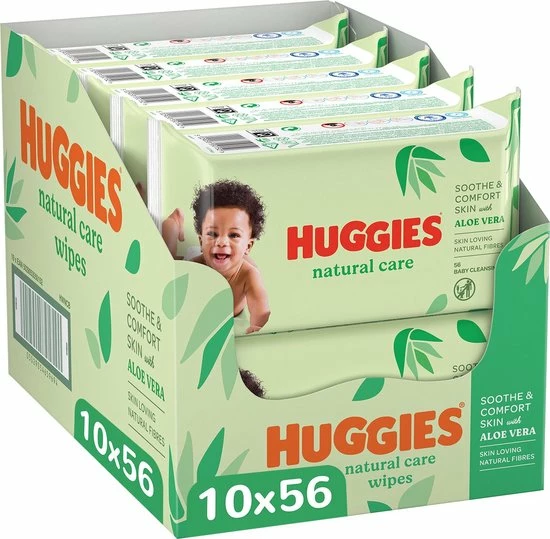 Natural Care doekjes hebben natuurlijke, absorberende vezels voor een gezonde huid. Een unieke structuur gemaakt van 70% natuurlijke vezels, zonder parabenen en phenoxyethanol, met 98% puur water zodat deze geen vettig laagje achterlaat op de huid van uw baby. Deze Huggies Natural Care billendoekjes zijn verrijkt met Alo? Vera en Vitamine E, ingredi?nten die bekend staan om hun huidverzorgende eigenschappen. De doekjes zijn voorzien van een gewatteerde structuur die zorgt voor een zachte en effectieve reiniging. Klinisch getest.