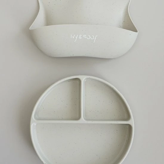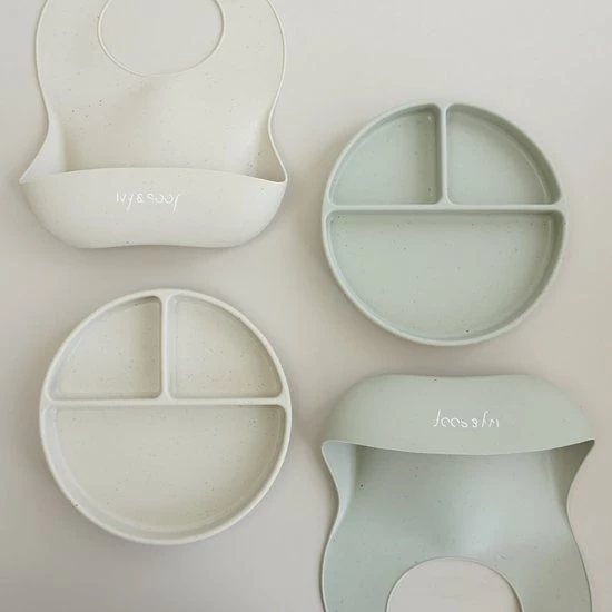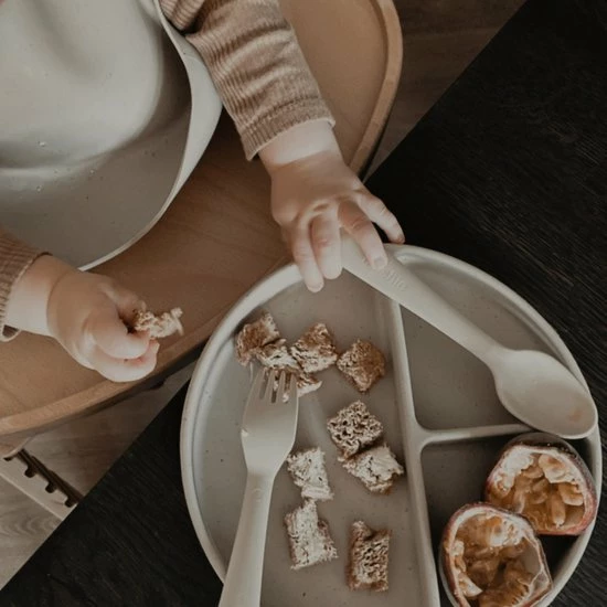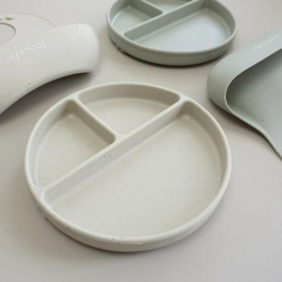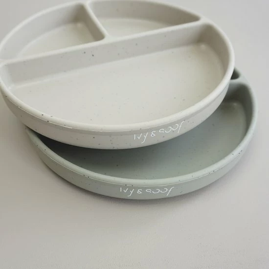 Het bordje is verkrijgbaar in de kleur zand en olijf. Daarnaast zijn er in beide kleuren bijpassende siliconen slab verkrijgbaar wat zorgt voor een extra schone maaltijd voor jouw en je kindje.