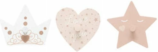 JJA Kinderkapstok Hart / Ster / Wolk / Kroon. Roze / Hout 57cm
