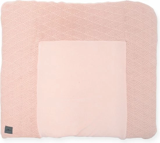 Een zachte extra grote hoes met prachtige randen van gebreide stof, gebreid in golfjespatroon. De hoes past precies om een groot formaat aankleedkussen en is de meest praktische basic in de babyuitzet. De stof is zacht en rekbaar en het dessin geeft een persoonlijk tintje of maakt de babykamerinrichting helemaal af. De hoes sluit rondom waardoor het goed blijft zitten.