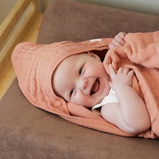 Na het badderen of zwemmen is deze badcape ideaal. Je wikkelt je baby direct warm in zodra hij uit het water komt. Met de capuchon bedek je het hoofd waardoor het daar ook geen warmte verliest. Comfortabel voor je baby! De zachte hydrofiel is mild voor de tere babyhuid en neemt goed vocht op waardoor het afdrogen in een mum van tijd klaar is. Na gebruik hang je de cape gemakkelijk op aan het lusje.