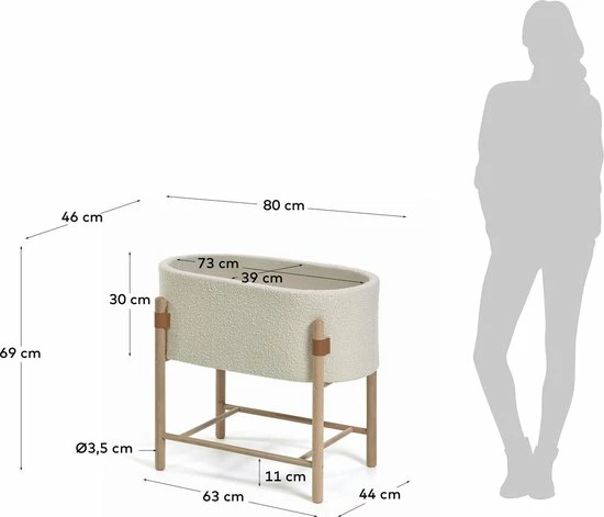 Kave Home – Adara Mozes Mand Met Wit Fleece En Massief Beukenhouten Poten 69 X 46 Cm