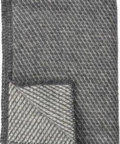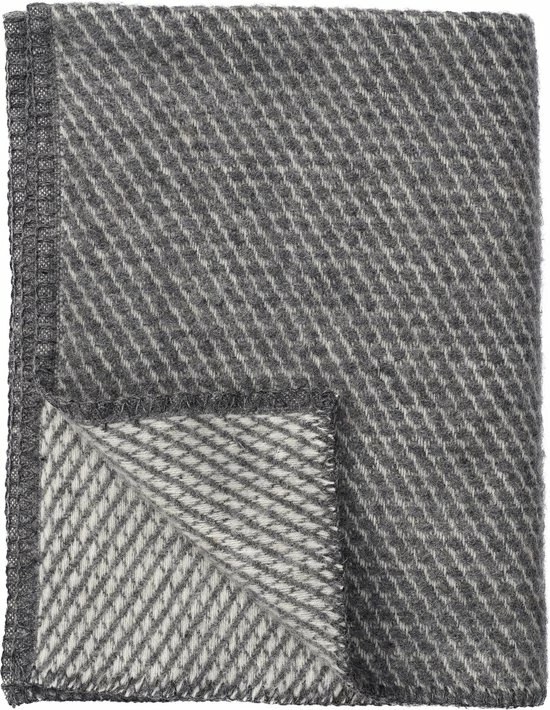 Ontwerp Velvet is een eigen ontwerp van Klippan, het is een unikleur dekentje in het grijs. Het ingeweven motief is er met een ecru draadje ingeweven.