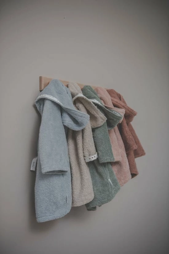Deze badjas is zacht, vochtopnemend en gemaakt van lusvast badstof uit biologisch katoen. Dijon Daily is een complete lijn met producten in zachte pastelkleuren die voorziet in de basisbehoefte voor de verzorging van jouw baby.