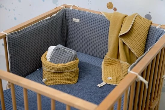 Het belangrijkste aan deze boxbumper is uiteraard de bescherming tegen tocht en tegen het stoten aan de spijlen van de box. Je kunt de boxomrander gemakkelijk aan de spijlen van de box bevestigen met de daarvoor bestemde koordjes. Er zitten meerdere bevestigingskoordjes over de gehele breedte van het kussen zodat hij goed verdeeld en vastgestrikt kan worden. Door Nederlandse kraamzorginstellingen wordt het gebruik van de bumper in een bedje afgeraden. Gebruik in de box wordt wel toegestaan.