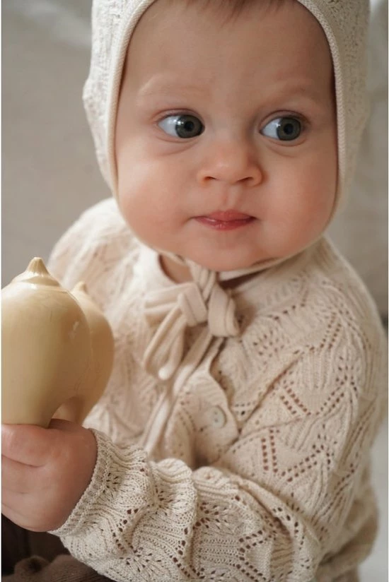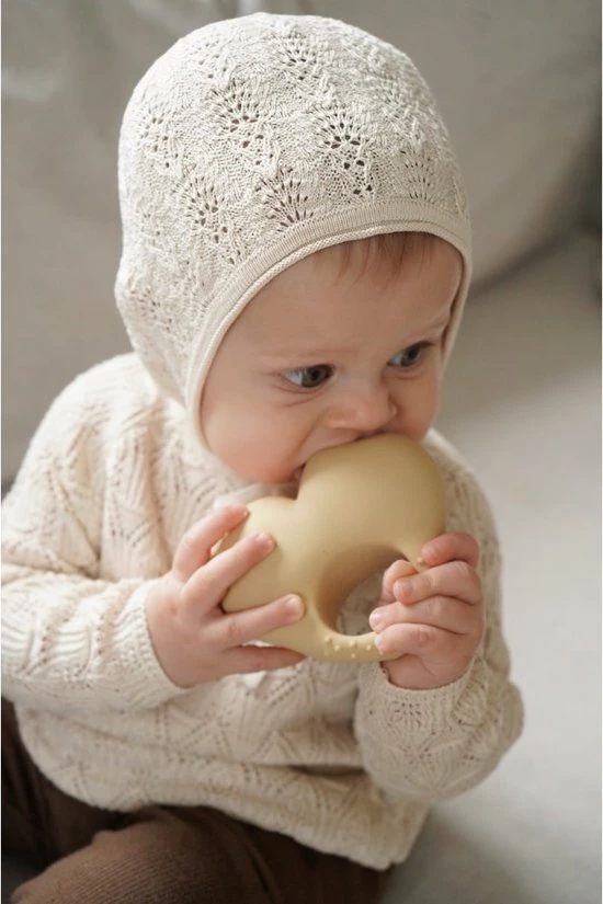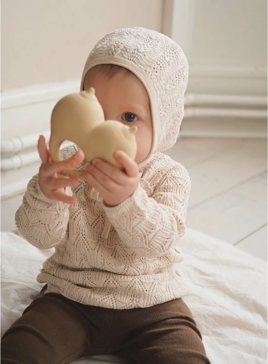 Bijtring van het Deense merk Konges Sløjd gemaakt van 100% natuurlijk rubber. De leuke structuur stimuleert de zintuigen van je baby (smaak, gevoel)De Babs bijtring biedt eveneens rustgevend comfort en helpt de uitbarsting van nieuwe tandjes van je baby te stimuleren met zijn verschillende texturen.Kenmerken
