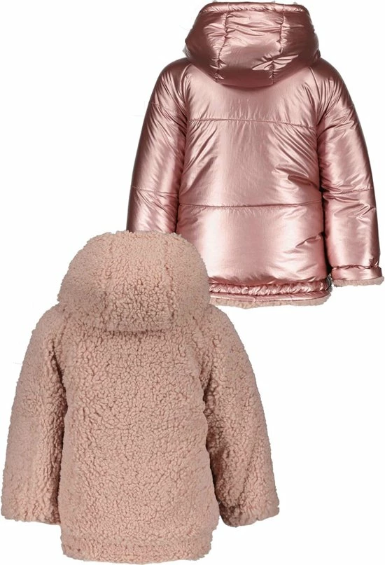 Like Flo trendy reversible winterjas voor de mini meiden in de prachtige combinatie van ros? goud met stoere badges. Deze te gekke jas met capuchon kun je aan 2 kanten dragen. De ene kant is een functionele jas in een hippe ros? goud metallic kleur. De andere kant is gemaakt van een heerlijke zachte ros? teddy. Stoer maar ook girly. Eigenlijk dus twee jassen in ??n!