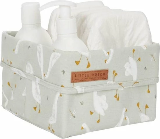 Geen rondslingerende luiers, tubes en flesjes meer: met dit commodemandje van Little Dutch blijft de commode mooi opgeruimd en georganiseerd! De commodemand van Little Dutch is prachtig afgewerkt en biedt een opbergplek aan alle producten die je dagelijks nodig hebt om je baby te verzorgen. Met het stoere leren label en de zachte jersey stof is het een mooi accessoire in iedere babykamer.