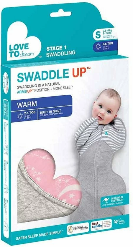 Swaddle Upâ„¢ is een Fase 1 slaapzak, ofwel een inbakerslaapzak. Zodra je baby tekenen geeft te beginnen met rollen, bouw je het inbakeren af met de Love To Dreamâ„¢ Fase 2 Transition Bag of Transition Suit.