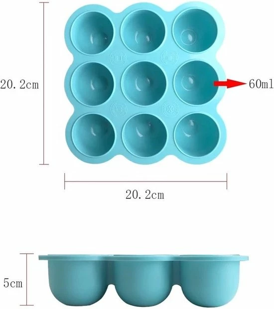 De babyvoeding bewaarbakjes heeft 9 porties zodat je zelfgemaakte voeding voor meerdere dagen bewaart. Het babyvoeding bewaarbakje is gemaakt van 100% BPA-vrij zacht siliconen materiaal, hierdoor druk je gemakkelijk je ingevroren voeding per portie uit om te ontdooien. De overgebleven porties doe je daarna weer in de vriezer om de voeding langer te bewaren. Sluit de bewaarbakjes af met geleverde deksel zodat de voeding niet in aanraking komt met bacteri?n of andere etenswaren.