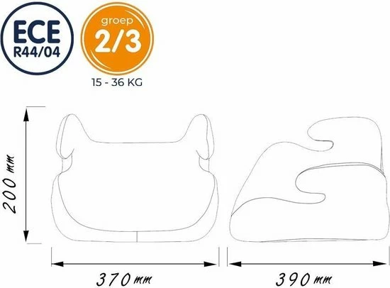 - Stofsamenstelling hoes: 100% polyester volgens ECE R44/04 richtlijnen