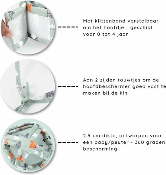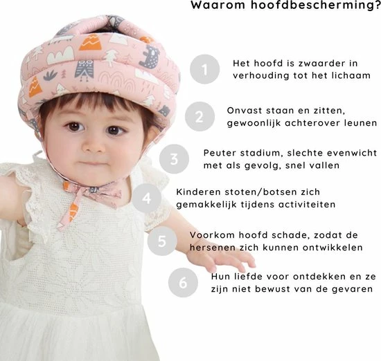 Is het niet heel spannend wanneer jouw baby begint te kruipen? Al snel krijg je te maken met het feit dat je kind nu kan bewegen, maar dit kan ook heel eng zijn. Dat betekent dat ze aan alles gaan zitten en dingetjes kunnen omgooien. Als ouder is het jouw taak om ze te beschermen tegen dit soort situaties. Voorkom dat jouw kruipende kind zichzelf bezeert. Deze hoofdbeschermer is perfect om het hoofdje te beschermen tegen de problemen van jouw huis. Dik gedempte spons, verstelbaar met klittenband/touwtjes en comfortabel om te dragen; je kind is vrij om veilig en wel door je huis te bewegen. Geschikt voor baby’s en peuters.