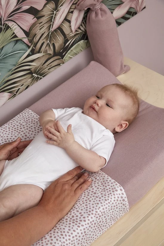 Deze Meyco Baby Aankleedkussenhoes Basic Jersey doe je om je aankleedkussen, zodat jouw kindje tijdens het verschonen en aankleden lekker zacht ligt. De stof voelt zacht en rekbaar aan, perfect voor de tere babyhuid. De hoes is gemaakt van 100% natuurlijk katoen, waardoor vocht goed opgenomen wordt. De aankleedkussenhoes blijft mooi, ook na vele wasbeurten.