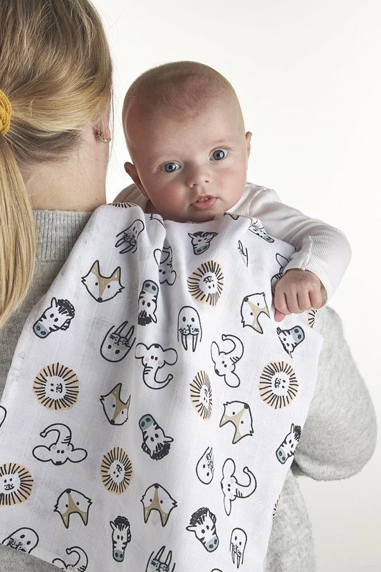 Met deze multifunctionele Meyco Baby Hydrofiele Swaddles 3-pack Animal, bedrukt met vrolijke diertjes, kun je met de verzorging van je kleintje alle kanten op. Of je ze nou als inbakerdoek, wikkeldoek, handdoek, borstvoedingscover, knuffeldoekje, spuugdoekje óf dekentje gebruikt, ze zijn standaard heerlijk zacht en comfortabel voor de tere babyhuid. Het 100% hydrofiel katoen neemt vocht zeer goed op en droogt ook nog eens supersnel. Onmisbaar en Ideaal om altijd bij je te hebben!