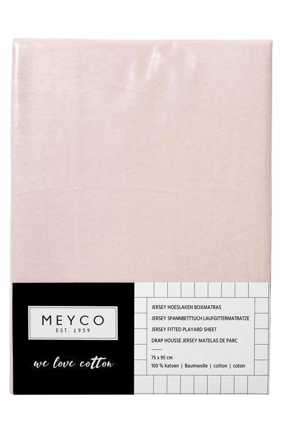 De Meyco jersey hoeslakens zijn van 100% katoen en daardoor fijn ademend. De hoeslakens zijn verkrijgbaar in diverse kleuren bijpassend bij de Meyco collectie. 75×95 cm, speciaal geschikt voor de boxmatras.