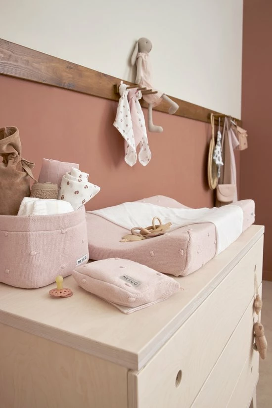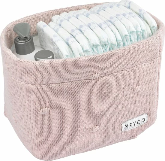 Dit gebreide Meyco Baby Commodemandje Mini Knots ziet er niet alleen leuk uit, het is ook nog eens erg praktisch in de babykamer. Zet hem dichtbij of óp de commode en berg er alle verzorgingsproducten (of speelgoed) in op. Zo blijft alles netjes bij elkaar en heb je het zo bij de hand. Handig! De opliggende, gebreide mini knopen geven het mandje nét een wat speelser effect.Tip: Is de Mini Knots collectie net niet jouw smaak? Kijk dan eens naar onze reguliere Knots collectie!