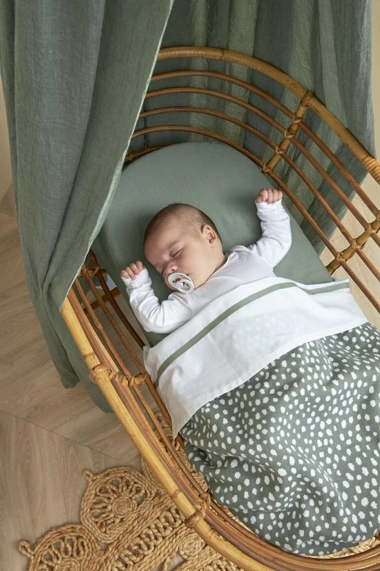 Deze deken is verkrijgbaar als wiegdeken (kies 75×100 cm variant) en als ledikantdeken (kies 100×150 cm variant) en combineer je met een van de leuke Meyco Baby lakens.