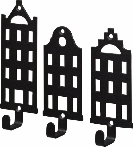 Set wandhaakjes met Hollands design gemaakt van metaal. De wandhaken worden geleverd inclusief bijpassende zwarte schroeven.