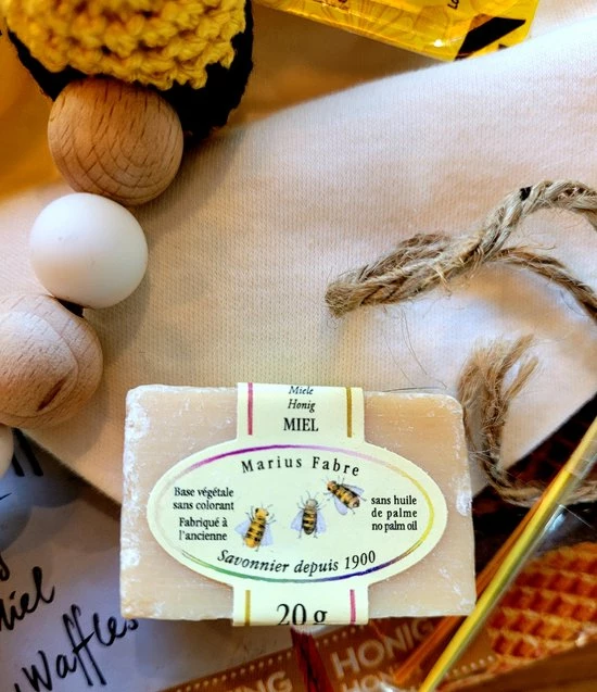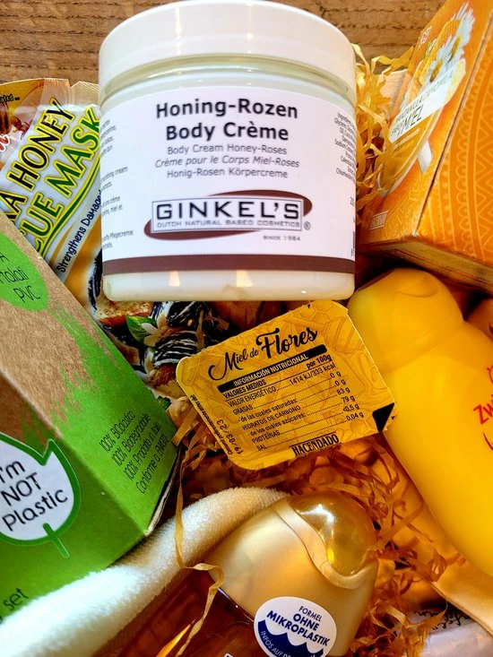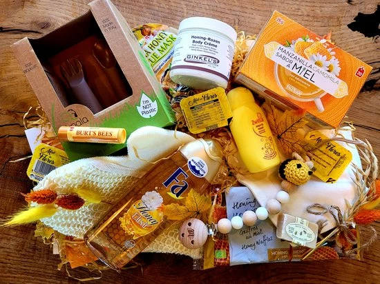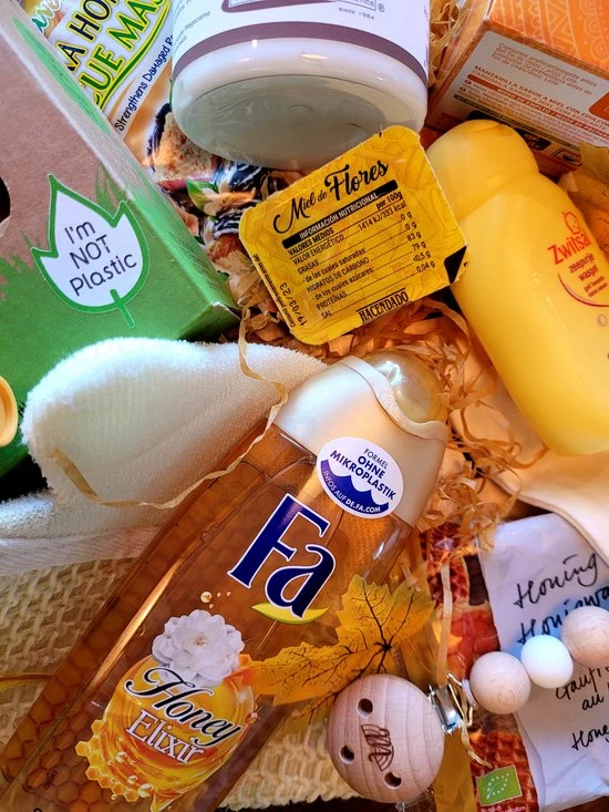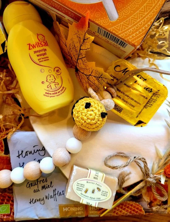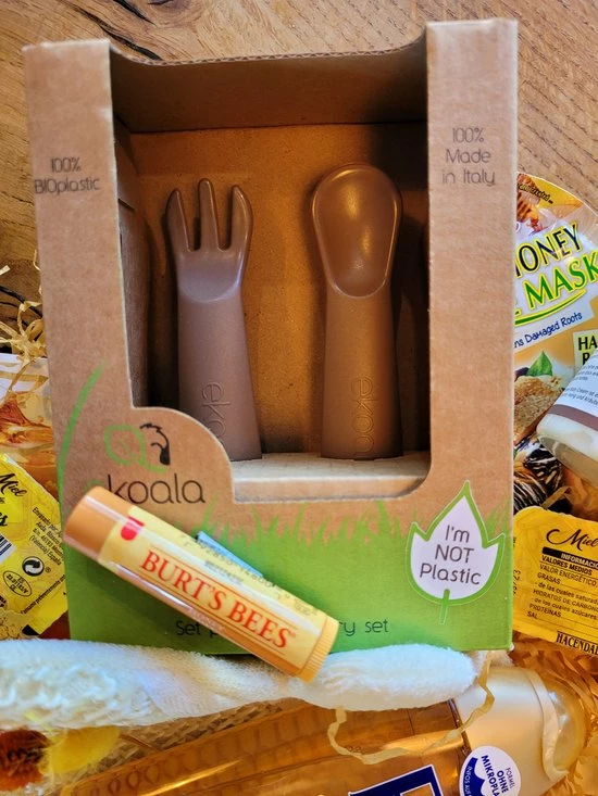 Het pakket wordt op een kleine houten pallet feestelijk ingepakt.