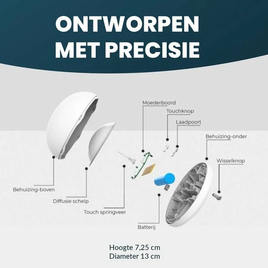 Sommige mensen prefereren warm licht, anderen juist wit licht. Omdat wij willen dat jij kunt kiezen heeft deze prachtige nachtlamp een knop op de onderkant om het soort licht in te stellen. Zo kun jij bepalen wat je fijn vind.