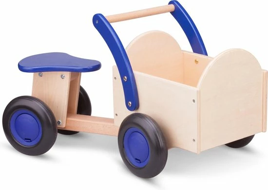 New Classic Toys Houten Bakfiets – Road Star – Blank/Blauw – Zadelhoogte Is 24 Centimeter