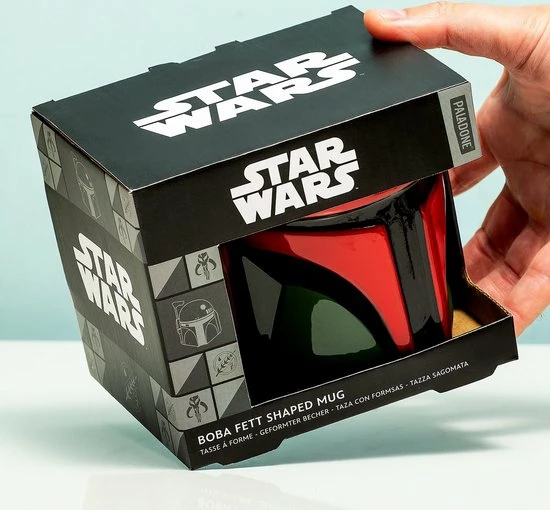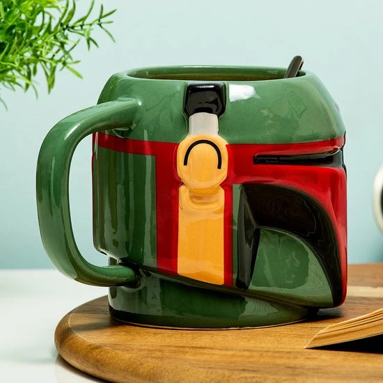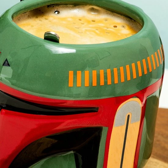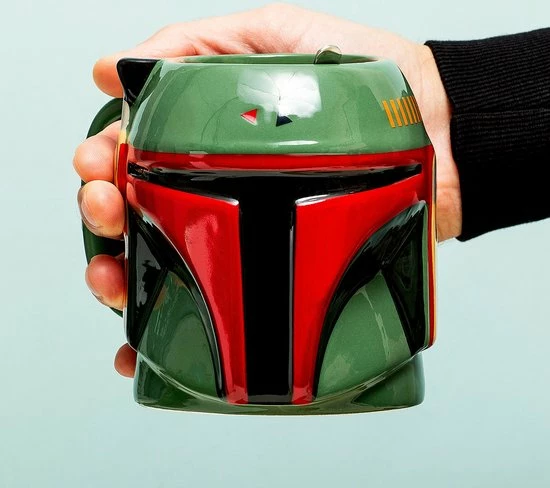 Boba Fett mok van Star Wars. XXL mok in de vorm van de helm van premiejager Boba Fett uit de Star Wars films en The Mandalorian. De mok heeft een inhoud van maar liefst 650 milliliter. Dit is een officieel gelicenseerd product van Star Wars.