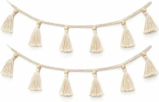 Geef de baby- of kinderkamer een extra bohemian uitstraling door deze handgemaakte slinger met kwastjes op te hangen. Het is een veelzijdige accessoire die je gemakkelijk kunt ophangen aan de muur, deur, kast of opbergmand. Deze mooie slinger is gemaakt van natuurlijke materialen, waardoor het helemaal past binnen de kinderkamers van nu. Dus ben je op zoek naar dé finishing touch voor de kinderkamer; koop dan deze geweldige slinger met kwastjes!